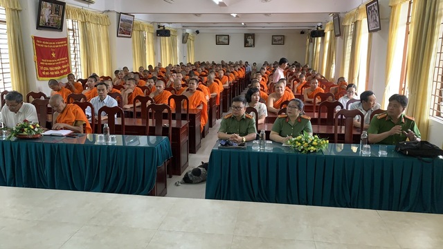 Thay mặt Ban Chỉ đạo mô hình “4 không, 4 có” mong rằng các thầy, cô và các vị sư luôn quan tâm những nội dung mà báo cáo viên đã truyền đạt, nhằm đề phòng, không mắc vào các thủ đoạn lừa đảo của kẻ xấu, có ý thức giữ gìn an ninh trật tự, an toàn xã hội trong nhà trường và tại địa phương. 2/ Một số kết quả công tác đảm bảo ANTT nổi bật năm 2025. 3/ Có ý thức khi tham gia giao thông”.