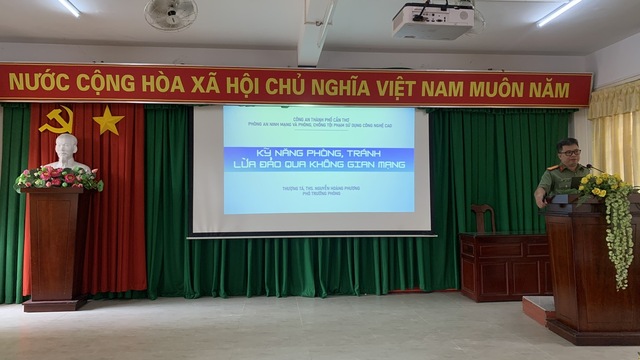 Đồng chí Nguyễn Hoàng Phương, Phó Trưởng phòng An ninh mạng và phòng, chống tội phạm công nghệ cao, Công an TP. Cần Thơ, đã báo cáo chuyên đề về tình hình và biện pháp phòng, chống lừa đảo trên không gian mạng, giúp cán bộ, viên chức, người lao động và học viên nhà trường kịp thời nắm bắt thông tin, nâng cao kỹ năng phòng ngừa tội phạm và tệ nạn xã hội.