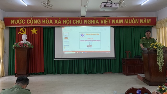 Đồng chí Danh Si Phay, Cán bộ Tổ phòng, chống tội phạm Công an phường Sóc Trăng, TP. Cần Thơ báo cáo về tình hình an ninh trật tự nổi bật năm 2025, nhằm giúp cán bộ, viên chức, người lao động và học viên nắm bắt kịp thời tình hình an ninh trật tự trên địa bàn; nâng cao ý thức cảnh giác, chủ động phòng ngừa các loại tội phạm và tệ nạn xã hội; góp phần giữ vững ổn định an ninh chính trị, trật tự an toàn xã hội tại địa phương.